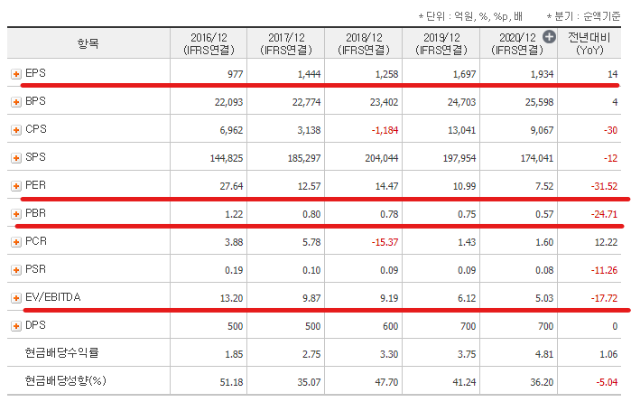 PER, PBR, EV/EBITDA 은 낮을수록 저평가