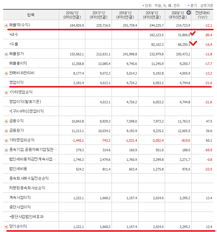 솔직히 코로나19 때문에 매출액이 감소하여 걱정이 되었으나 생각보다 영업이익과 당기순이익이 좋아 당사의 수익구조에 믿음이 갑니다. 코로나19가 종식되고 매출액이 확대됨에 따라 얼마나 더 수익성을 높일 수 있을지 기대가 됩니다.
