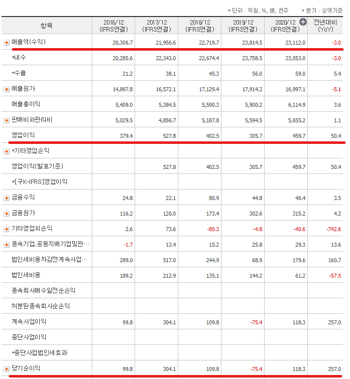 앞서 재무분석에서도 언급했듯이 풀무원은 성장에 한계가 있습니다. 때문에 현재 수준에서 매출이 확대될 가능성이 낮고 이익부분에서도 2020년이나 2018년 수준 정도로 유지될 것으로 보입니다. 당기순이익을 2020년 수준으로 예상해보면 올해 역시 투자지표 상으로는 고평가 된 종목으로 나타날 가능성이 높습니다. 재무상태표와 투자지표만 보았을 때는 그렇게 큰 매력을 느끼기 힘든 종목입니다.