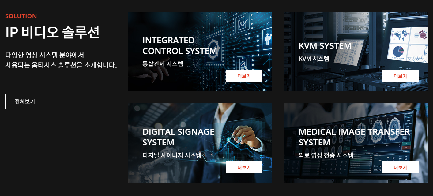 옵티시스는 1999년 회사를 설립한 후 광 케이블 개발에 집중하고 있는 회사입니다. 세계 최초로 UXGA 해상도 지원 DVI 광 케이블 개발, USB 광 케이블 개발, 듀얼링크 DVI 광링크 익스텐더 개발 등 세계최초로 개발한 제품이 많습니다. 2011년 코스닥에 상장하였고, 디지털 비디오 산업에 사용되는 제품을 지속 생산하고 있습니다.